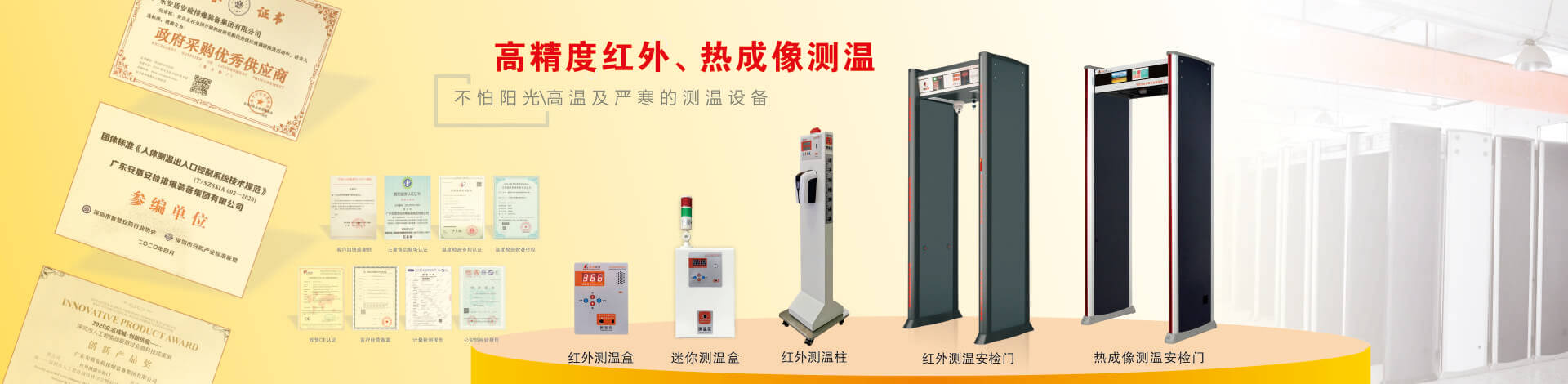 目前公司技術底蘊日益豐厚,擁有多項國家專利,在產品開發和創新方面有較深的制造經驗。“安盾品質 堅如磐石”是安盾人永恒不變的發展理念,公司目前已通過國際質量體系認證、國際環境體系認證、國際職業健康體系認證、產品已通過國家安全防范報警系統檢測中心和公安部安全與用電子產品質量檢測中心合格認證,并取得所有型號檢測報告,《GB15210-2003通過式金屬探測門》標準;并獲得國家高新技術企業認證、國家AAA級信用認證,歐盟CE認證、ROHS認證、美國FCC認證、廣東職業衛生檢測中心頒發的檢測報告、東莞市環境保護局頒發的《輻射安全許可證》,中國人民解放軍認證產品、中華人民共和國進出口企業、愛心公益企業等榮譽稱號;先后被當選為中國安全防范產品行業協會會員單位、廣東安防行業協會理事單位、東莞市安防行業協會常務副會長單位、中國安檢排爆聯盟常務理事單位、連續五年榮獲廣東省守合同重信用企業、中國警用裝備十大品牌、中國十大特種裝備品牌、科技型中小企業、廣東省高新技術產品等榮譽稱號、安盾集團平均每年服務至少200場大型活動安保任務。